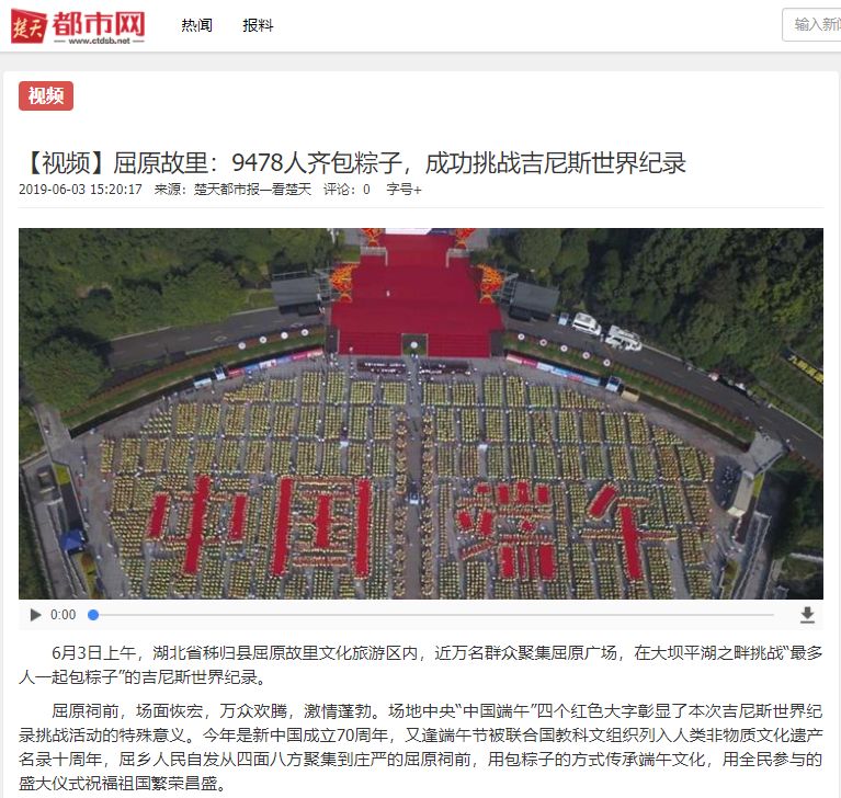 【视频】屈原故里:9478人齐包粽子,成功挑战吉尼斯世界纪录