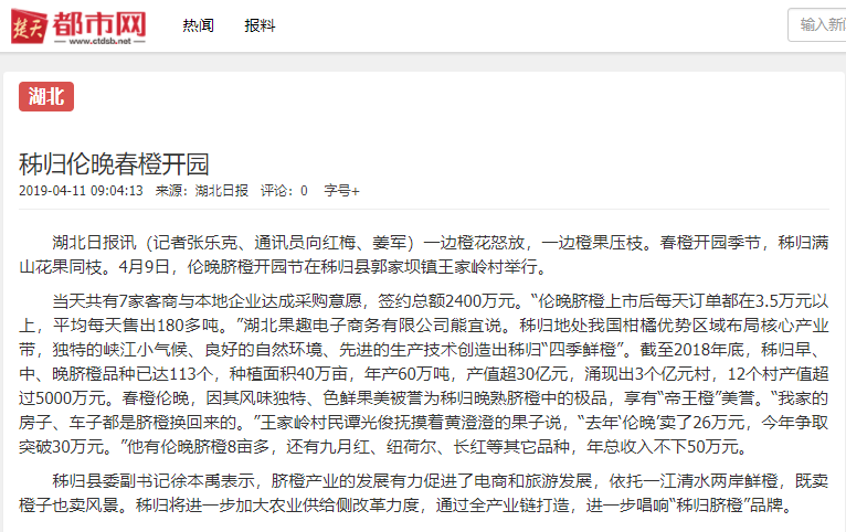 生态发展看秭归(1) “秭归脐橙”谱写《橘颂》新篇