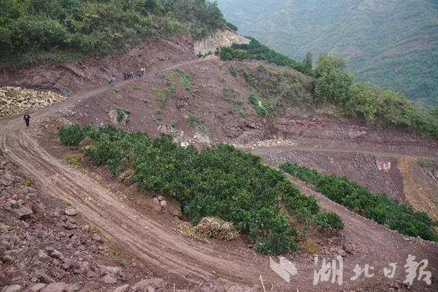 1月14日,冬日峡江碧空如洗。秭归县熊家岭村陡峭的山坡上,一条刚刚修通的4.5米宽的村道朱石公路穿过橙林,欢快地肆意延伸。