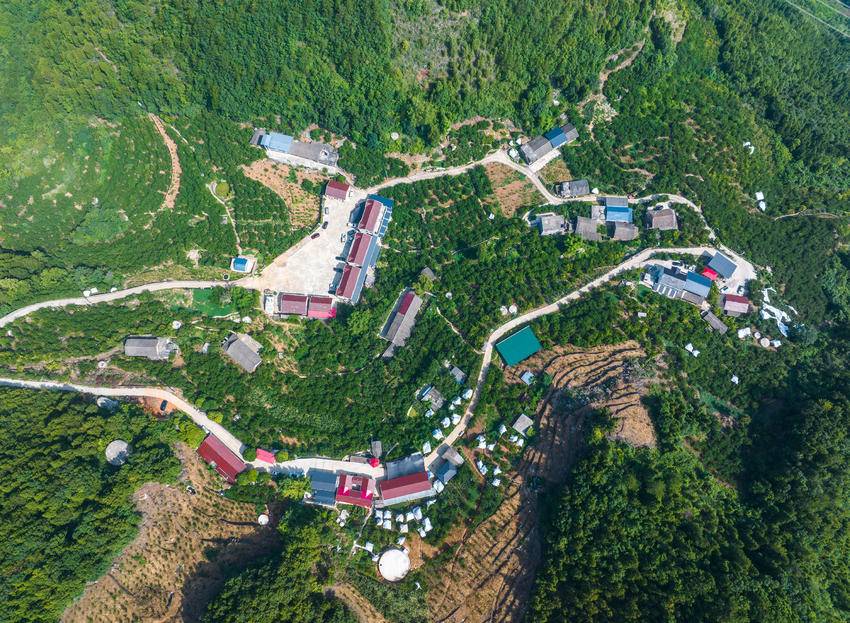 7月12日,在秭归县沙镇溪镇高潮村拍摄的李子产业村落(无人机照片)。