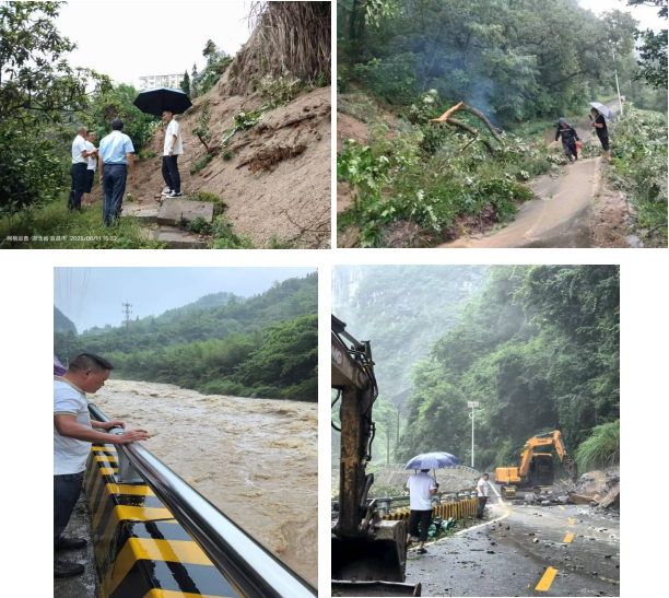 在抢险救灾现场,各工作组与时间赛跑、同汛情较量。针对强降雨引发的道路塌方、交通受阻等问题,镇交通专班迅速调配人员和机械设备,争分夺秒开展清障抢通作业。截至目前,已采取临时性保障措施疏通道路交通25条,清理塌方3500立方米,在持续性降雨灾害发生四小时内,全镇所有受阻公路均恢复通行,为抢险物资运输和群众出行安全打通了“生命通道”。对于房屋受损的7户14名群众,镇、村专班第一时间启动转移安置预案,通过集中安置、投亲靠友等方式,确保受灾群众全部得到妥善安置,居住环境安全稳定。