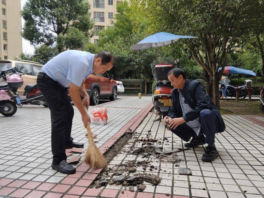 物业工程部接报后,5分钟内携带工具赶到现场,拆除破损地砖,重新铺设基层并压实抹平,还对周边地砖逐一加固检查。仅用20分钟,破损路面便恢复平整。
