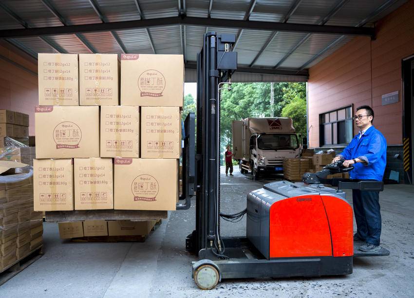 9月25日,屈姑国际农业集团的工人在转运打包好的月饼。