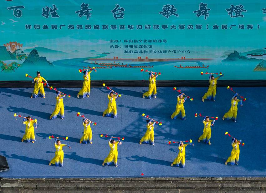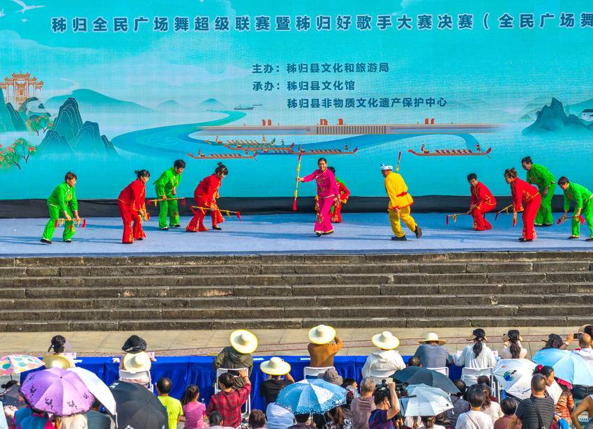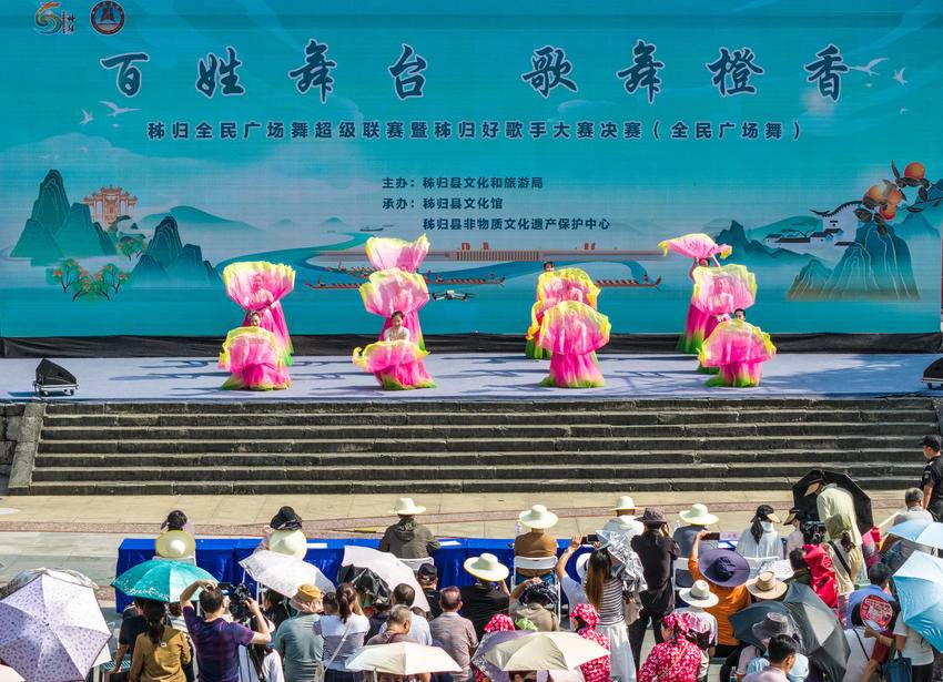 10月7日至8日,由秭归县文化和旅游局主办,秭归县文化馆(秭归县非物质文化遗产保护中心)承办的“百姓舞台 歌舞橙香—秭归全民广场舞超级联赛暨秭归好歌手大赛”决赛在屈原故里文化旅游区南门广场成功举办。来自各乡镇的24支广场舞参赛队伍中,茅坪凤之舞代表队《秭归莲响打起来》、杨林桥镇杨林桥村代表队《精忠报国》斩获金奖。郑华、王秭婍、郑博文、胡志涛等20人荣获“秭归好歌手”称号。