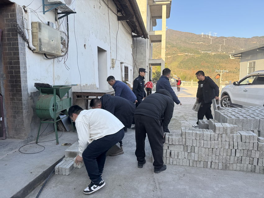调解成功后,在场工作人员帮兄弟二人共同搬走了阻挡车辆的砖头,道路恢复了畅通。