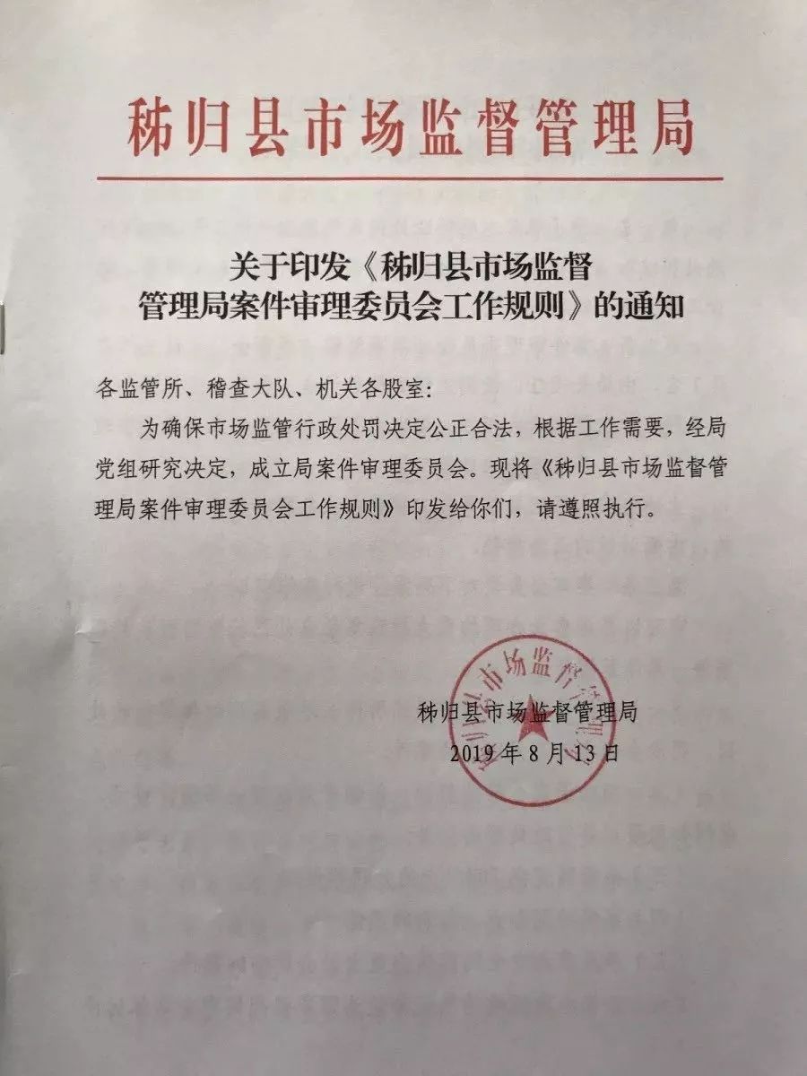 图丨秭归县市场监督管理局案件审理委员会工作规则
