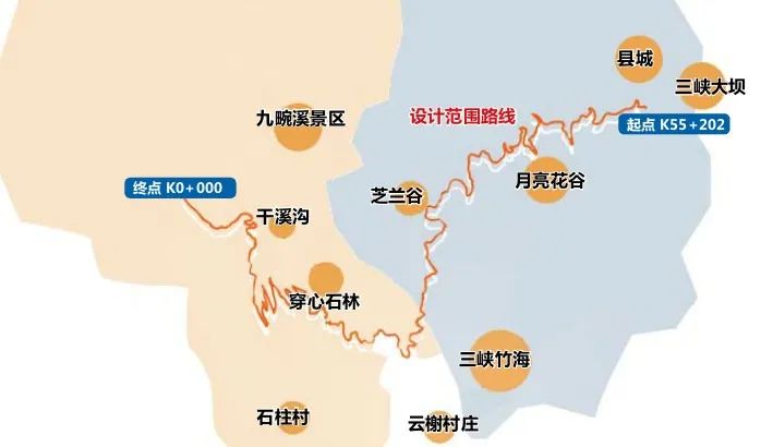 同时为拓展公路旅游功能、发展公路沿线旅游产业,项目还设置了港湾式停车带、观景平台、休闲娱乐等综合服务设施形成了一道靓丽的风景线。