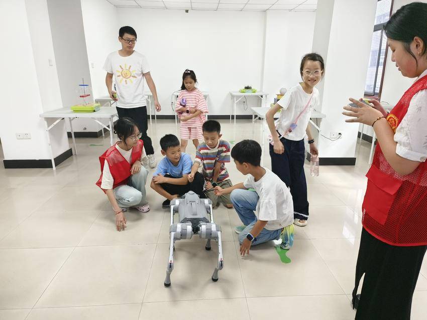 7月11日,秭归县茅坪镇南郡社区组织暑期爱心托管班的学员走进县科技馆,近距离感受科技的独特魅力。 在科技志愿者的引导下,孩子们兴致勃勃体验了反重力怪坡、智能机器人、模拟地震等互动展项。奇妙的科学现象一次次引发孩子们的阵阵惊叹,“机器人会跳舞,太神奇了!我以后也要发明这样的机器人!”三年级学生傅浩瑞兴奋地说。 活动中还特别设置了趣味实验环节,让孩子们在动手实践中直观理解科学原理,在玩乐中收获知识。 (来源:茅坪镇南郡社区 朱雨) 责任编辑:韩晓晴 值班编辑:文婵婵