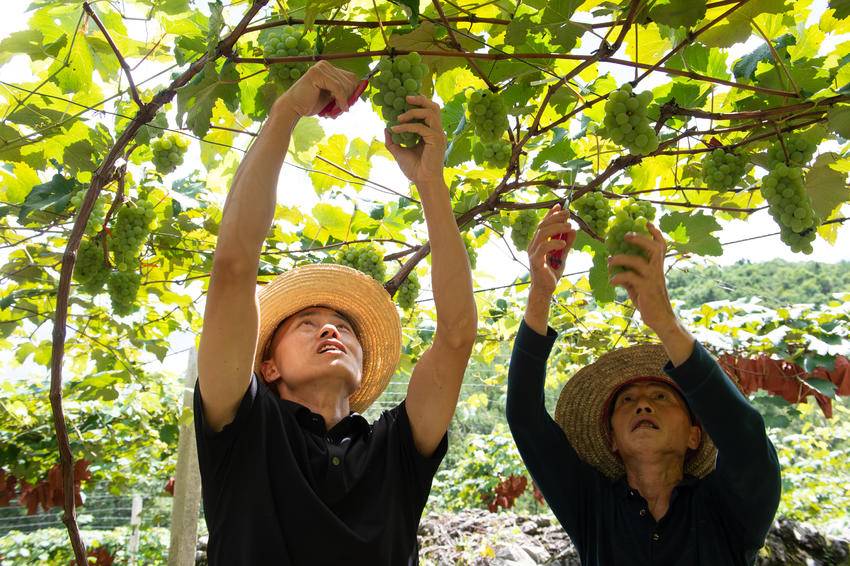 8月13日,村民在秭归县磨坪乡水晶葡萄园采摘葡萄。