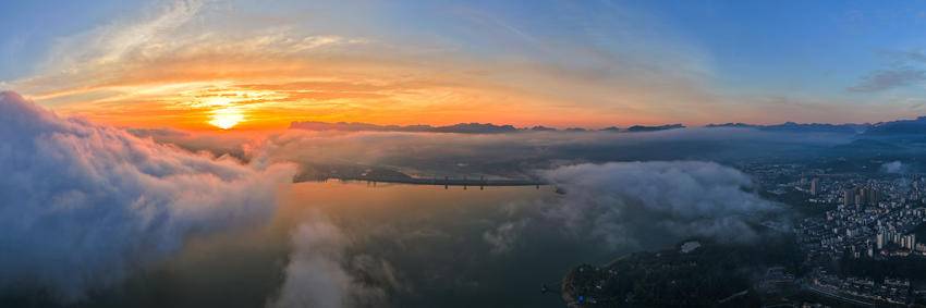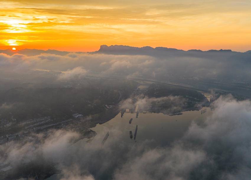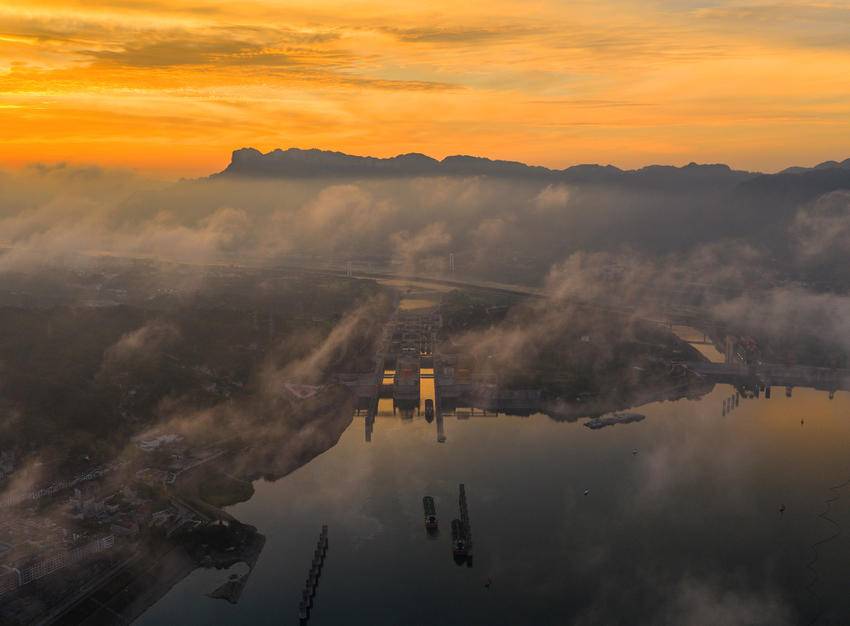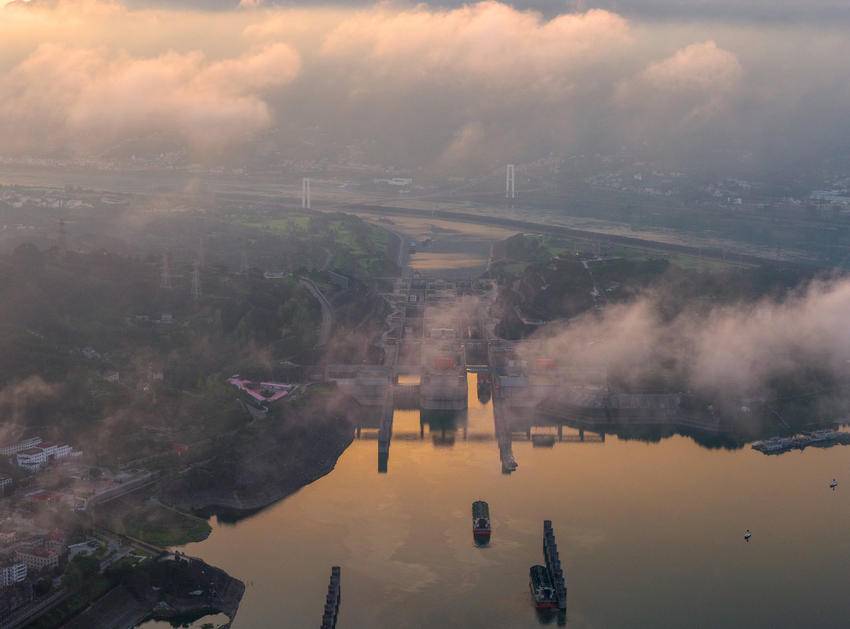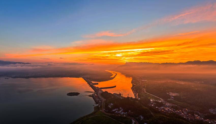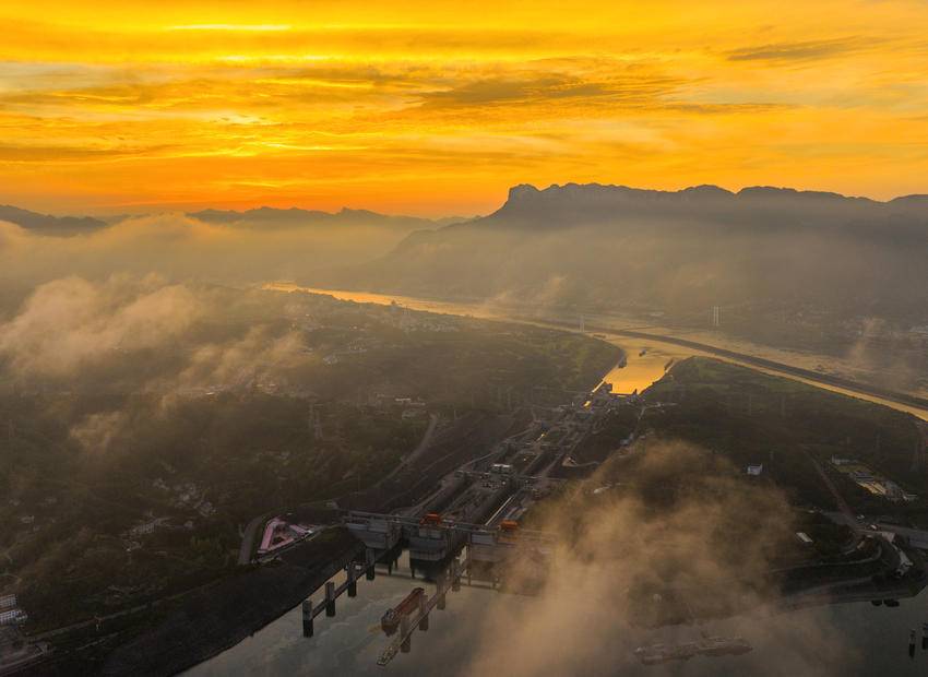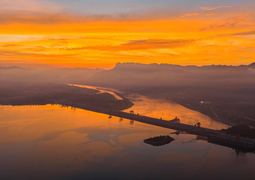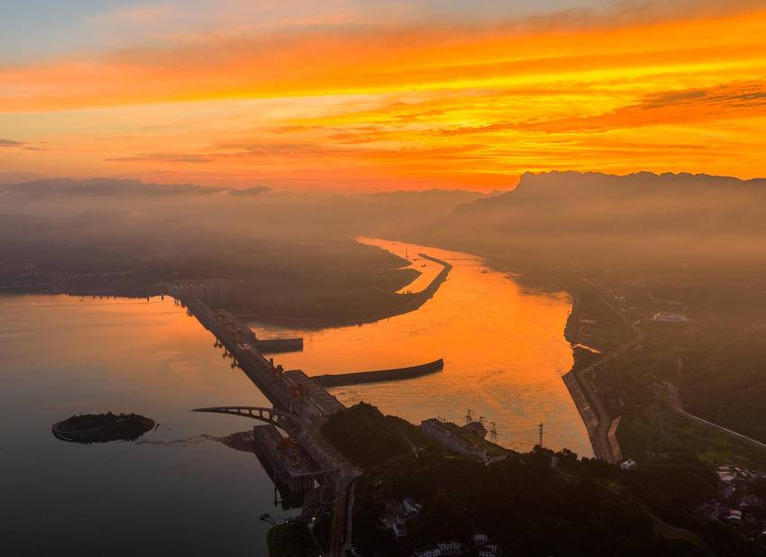 当日日出时分,在湖北省宜昌市秭归县,长江三峡大坝上空出现绚丽朝霞,映红了高峡平湖水域,生态大美。 图为8月27日,在湖北省宜昌市秭归县拍摄的朝霞辉映下的三峡水利枢纽工程(无人机照片)。 (来源:王罡) 责任编辑:肖飞 值班编辑:向姗姗