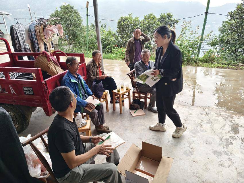 宣讲队将村委会活动室、村民庭院作为临时讲堂,一边发放农技科普宣传手册,一边与村民们围坐在一起进行知识讲解。宣讲员从柑橘病虫害的危害性、诊断识别与防治技术三方面入手进行了细致讲解,并介绍了科学的农药化肥配药方法及剂量比例,同时现场耐心解答村民提问,帮助解决实际问题。最后,宣讲员再三叮嘱大家不要盲目购买外来不明柑橘种苗,应从正规渠道购买种苗。