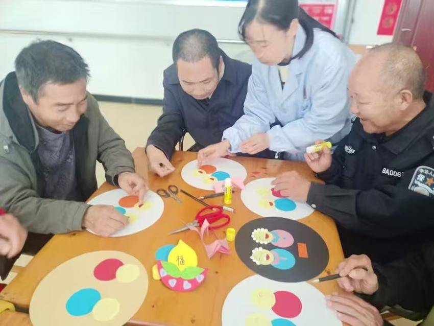 手工制作环节则成为活动的“暖心亮点”。工作人员为老人们分发圆形卡纸、五彩橡皮泥等材料,手把手教大家制作“幸福爷爷奶奶”手工作品。老人们专注地揉捏、塑形,用灵巧的双手将橡皮泥塑造成爷爷奶奶的笑脸,搭配上鲜艳的服饰,一个个生动形象的手工作品逐渐成形。同时,大家还一起制作桃心和寿桃,红色的桃心象征着“用真心对待老人”的初心,饱满的寿桃则承载着对爷爷奶奶“健康长寿”的美好祝愿,每一件作品都充满了心意与温情。