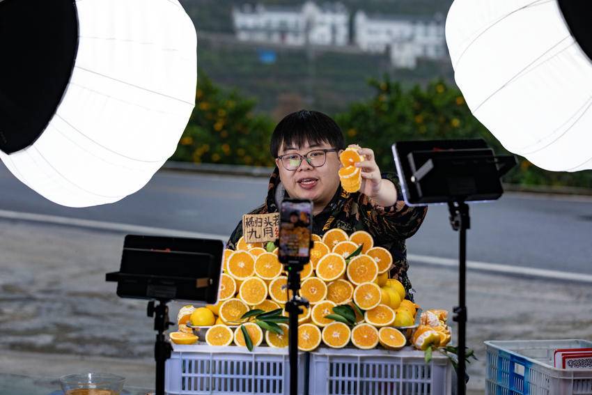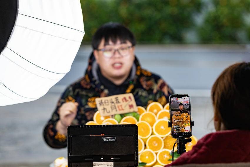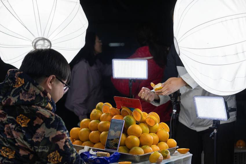 2025年11月7日,湖北省宜昌市秭归县郭家坝镇电商直播产业园内,助农主播们在推介秭归脐橙。 “双十一”将至,秭归县助农主播开足马力,加紧直播带货,利用多渠道销售秭归脐橙,供应市场需求。 (来源:彭强 寇志伦) 责任编辑:丁淑君 值班编辑:向姗姗