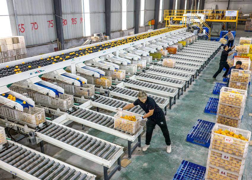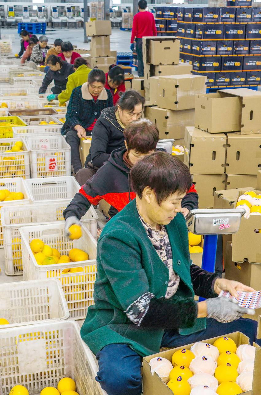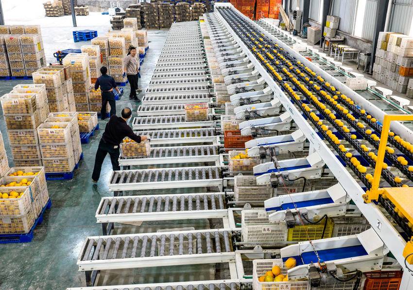 时下,三峡库区湖北省宜昌市秭归县农民种植的40万亩脐橙进入丰收季。当地食品外贸企业将果农收获的鲜橙进行分拣包装后,出口东南亚、俄罗斯等国家和地区,助力农民增收。 11月12日,工人在湖北省秭归县郭家坝镇王家岭村鲜橙自动化分拣线上忙碌(无人机照片)。 11月12日,工人在湖北省秭归县郭家坝镇王家岭村辰龙公司车间包装鲜橙(无人机照片)。 (来源:王罡 李俊) 责任编辑:韩晓晴 值班编辑:文婵婵