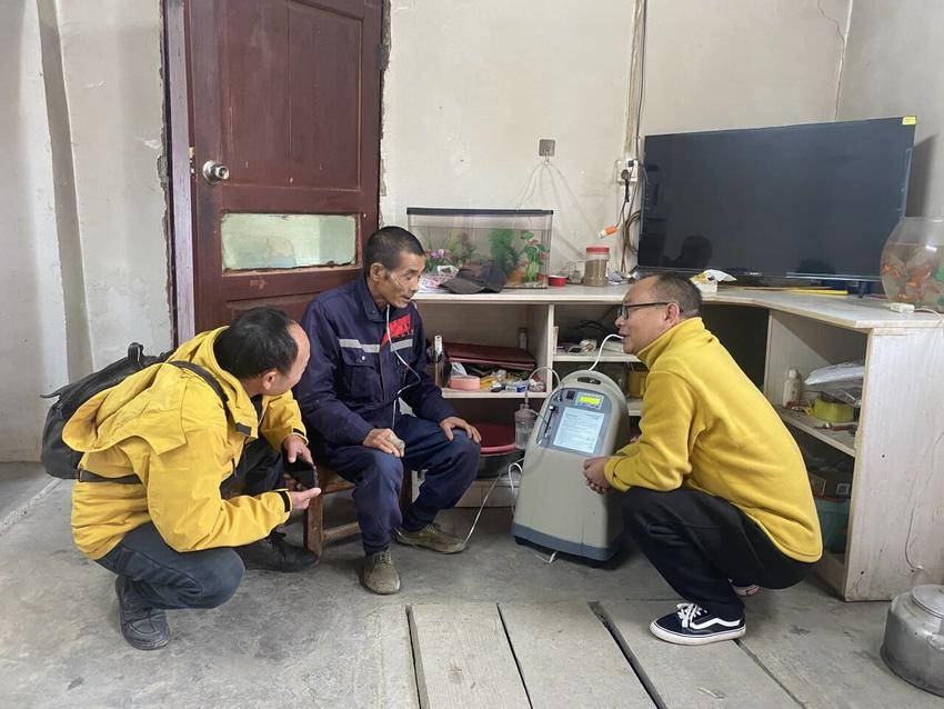 在送甲山村,患慢阻肺十余年的郑大爷遇到了难题:家中制氧机突然“罢工”。得知此情况后,“和美家医”团队迅速多方筹措,成功为郑大爷争取到一台爱心捐赠制氧机。服务现场,“和美家医”熟练地安装设备、精准调整潮气量与运行参数,耐心细致地指导使用方法,贴心为郑大爷进行了肺功能及肝肾功能等一系列检查,确保其身体状况稳定。这台及时的制氧机,解决的不仅是郑大爷的呼吸之困,更传递了来自基层医疗卫生服务的温度与关怀。