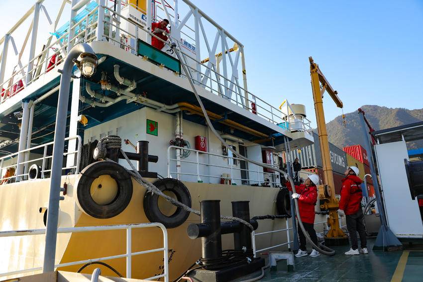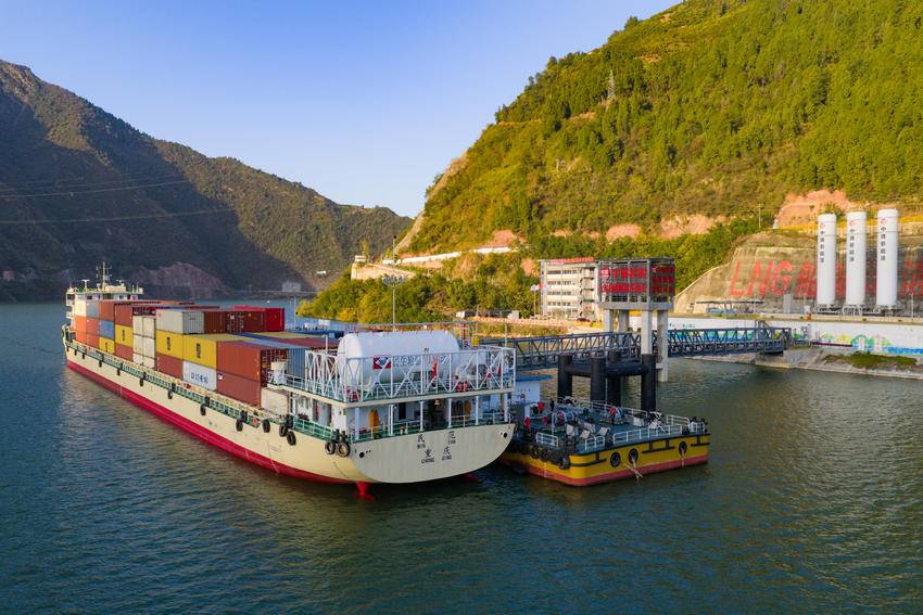 2025年11月25日,湖北三峡中旖新能源有限公司加注项目在湖北省宜昌市秭归县归州水域为民生轮船股份有限公司民范号货轮加注液化天然气。