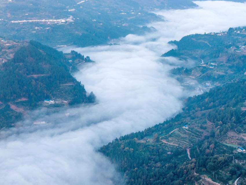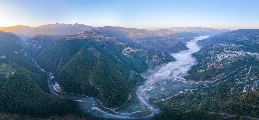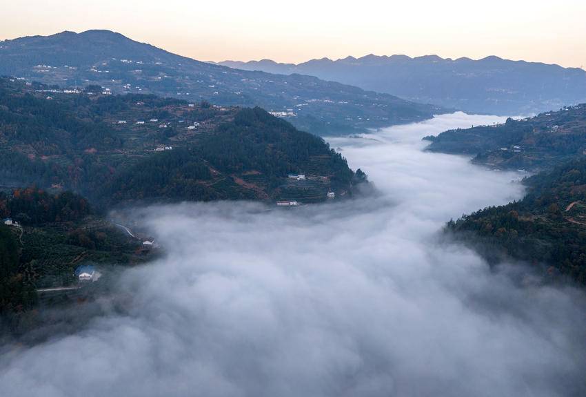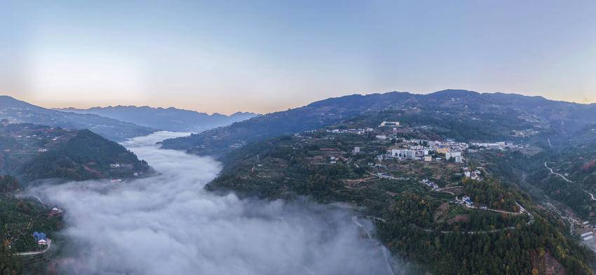 11月28日清晨,湖北省宜昌市秭归县梅家河乡梅家河畔云蒸霞蔚,炊烟袅袅,宛若水墨画卷,美不胜收。 图为11月28日,在湖北省秭归县梅家河乡拍摄的乡村景色(无人机照片)。 (来源:王罡 陈瑶迦) 责任编辑:邹媛 值班编辑:张晓雪
