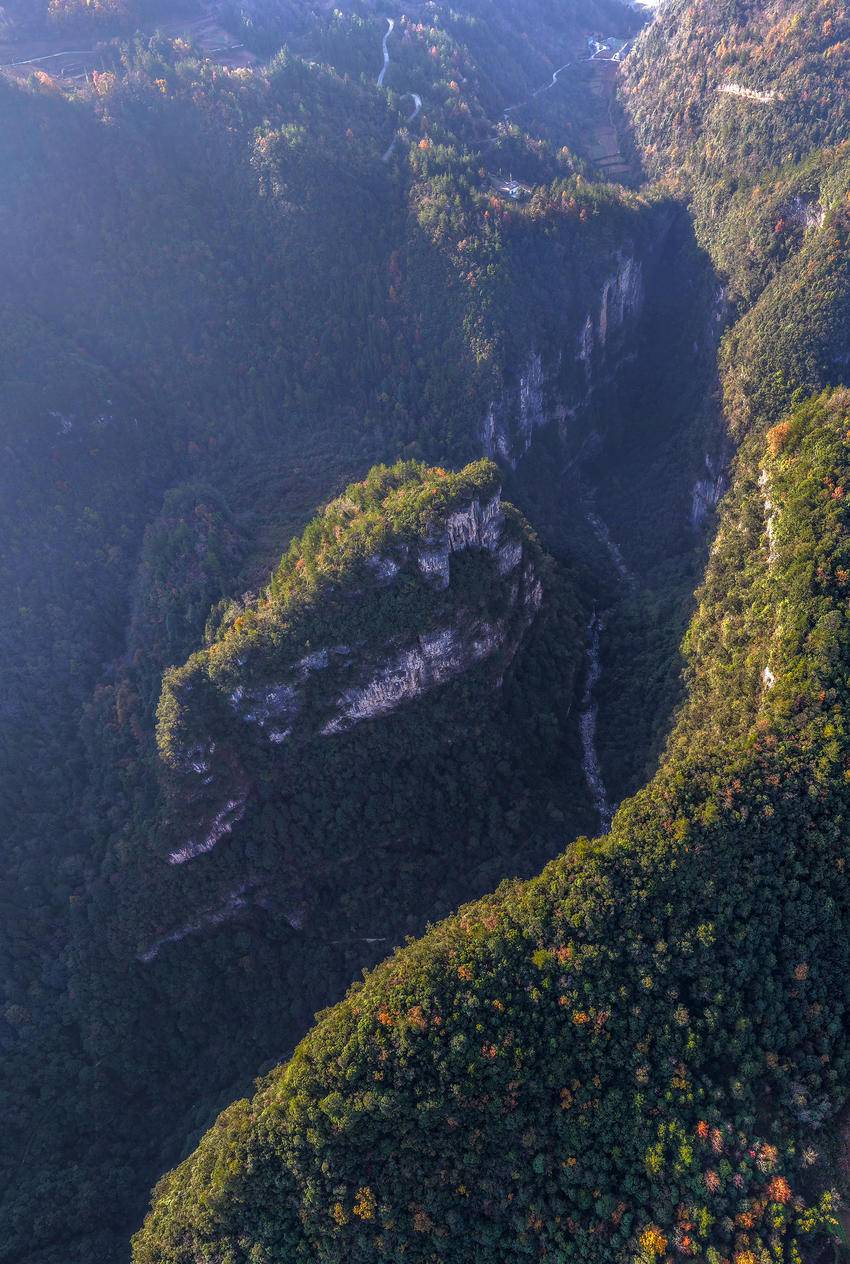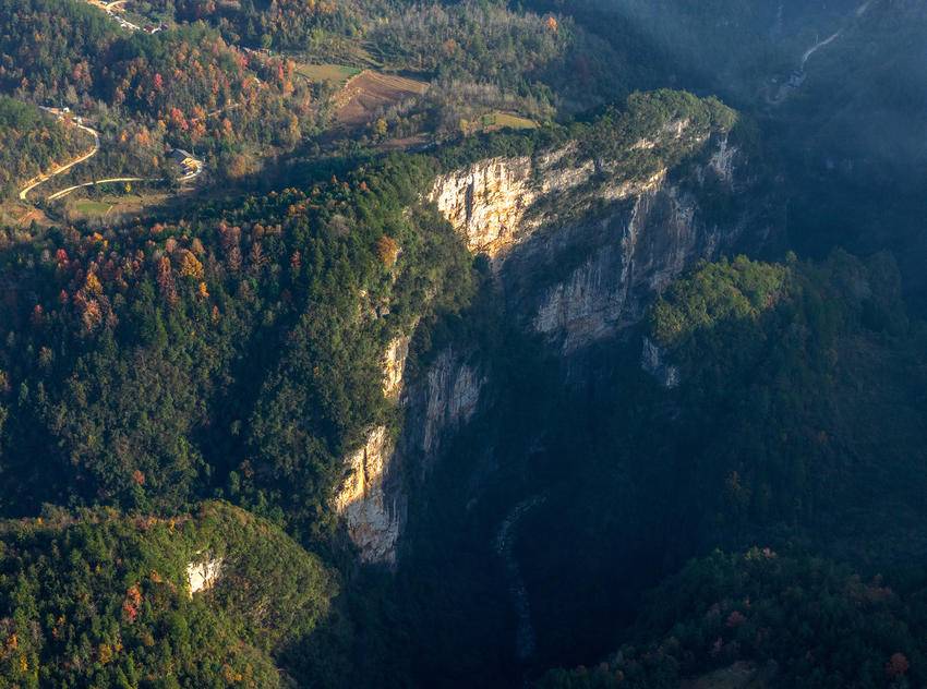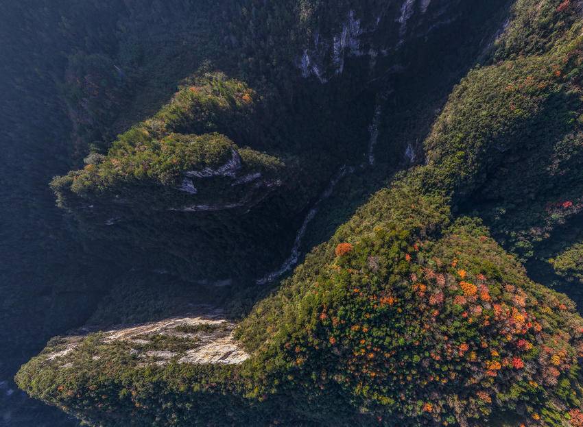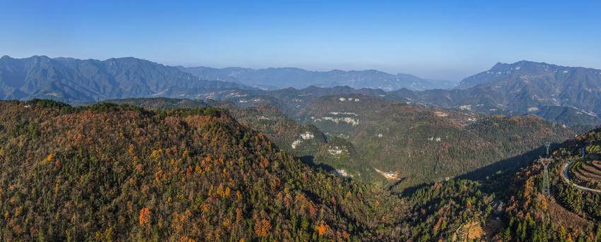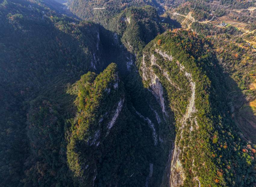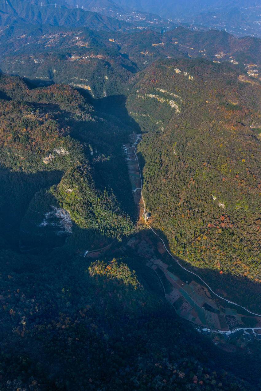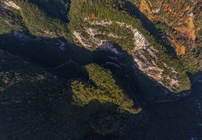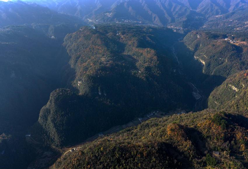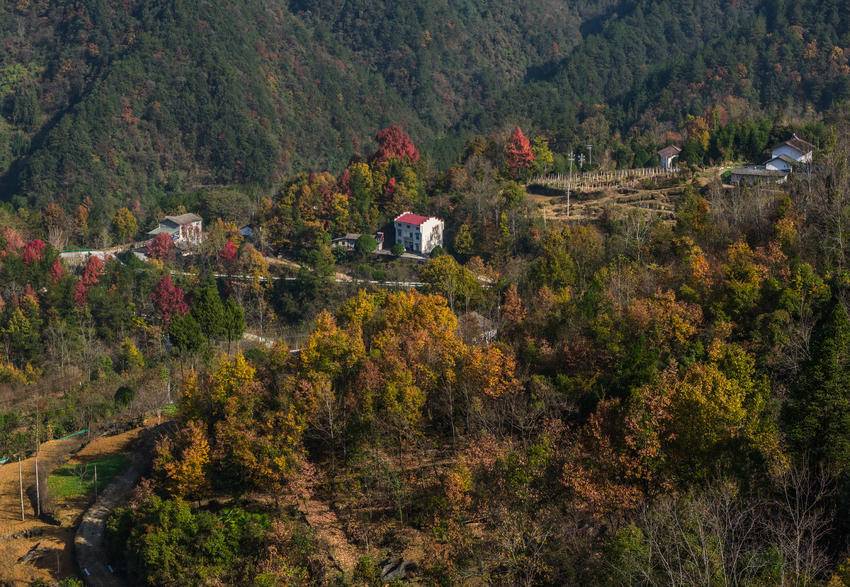 初冬时节,三峡库区湖北省宜昌市秭归县的山村层林尽染,色彩斑斓,美不胜收。