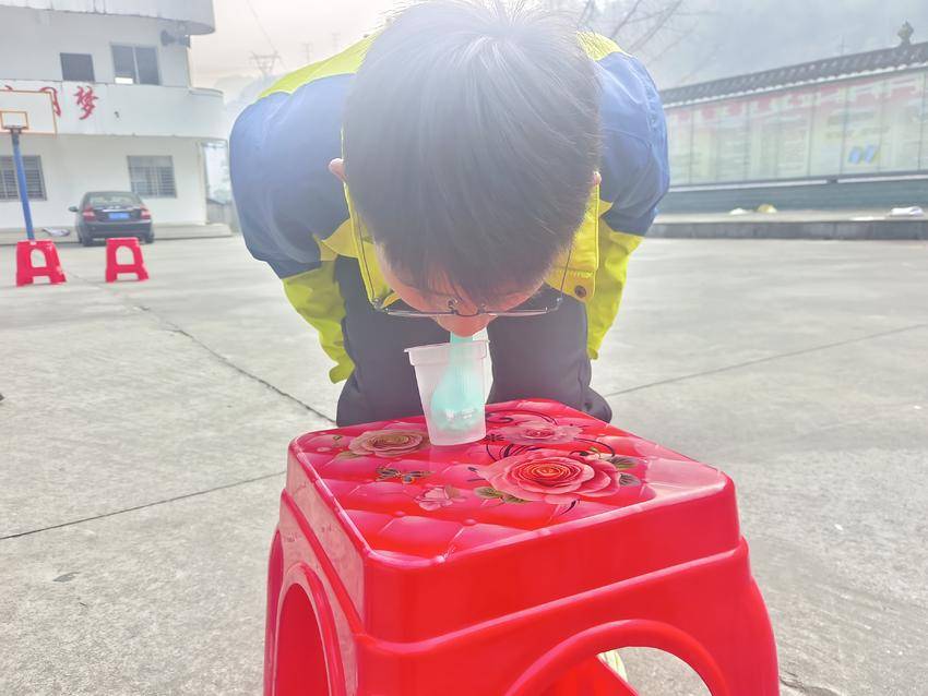 “气球运纸杯”环节,孩子们化身“气流小达人”,用气球气流推动纸杯前进,在专注中锻炼呼吸控制能力;“蒙眼走猫步”中,“领路人”在同伴语言指引下绕过障碍,在信任与沟通中收获友谊;“脚踝气球保卫战”热闹非凡,孩子们在躲避与“攻击”中释放活力;“重走长征路”项目则以红色教育为内核,孩子们团队协作控制小球穿越模拟的长征路线,在游戏中感悟长征精神,增强团队凝聚力。