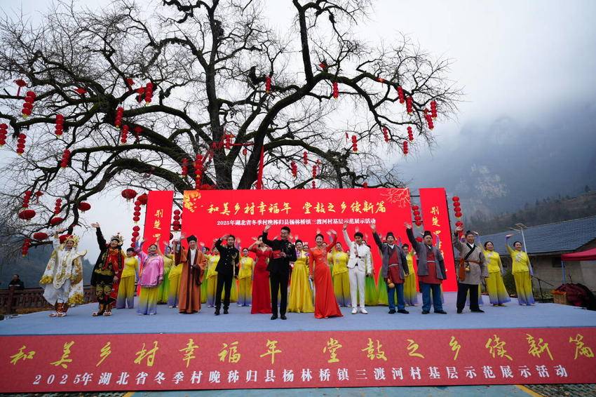 12月22日,秭归县杨林桥镇三渡河村热闹非凡,“活力新秭归 奋进新征程”——2025年全国冬季“村晚”秭归县杨林桥镇三渡河村示范展示活动在此热力上演,这场充满浓郁乡土气息、真挚情感与时代活力的文化盛宴,为冬日里的杨林桥镇增添了融融暖意,也奏响了喜迎新春的欢快序曲。