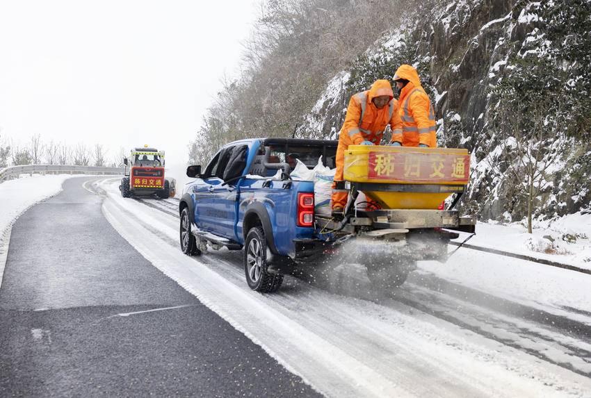 1月20日,湖北省宜昌市秭归县普降大雪,高山半高山地区道路交通严重受阻,当地交通运输部门迅速调集设备,组织力量开展扫雪除冰,确保道路安全及时畅通。图为交通运输部门正在芝茅路上进行扫雪除冰确保通行。 (来源:吴承忠) 责任编辑:韩晓晴 值班编辑:吕梦川