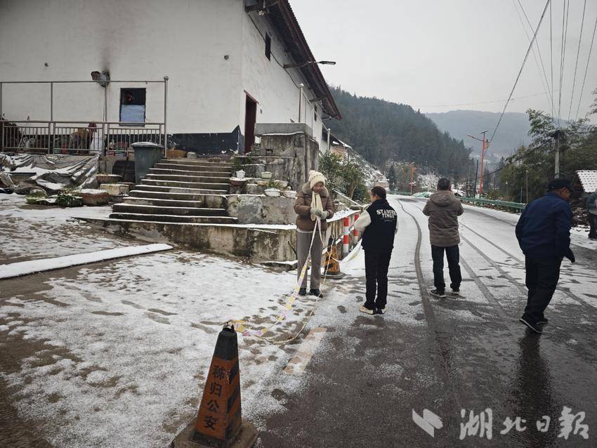 雪情就是命令。村“两委”与驻村工作队第一时间集结,在主要路口设立交通劝导站,耐心引导过往车辆,提醒减速慢行。针对积雪较厚的路段,村干部带头挥动铁锹,撒布防滑沙,抢通关键节点。同时,村内通过广播、微信群及时发布路况信息和安全提示,引导村民合理安排出行。