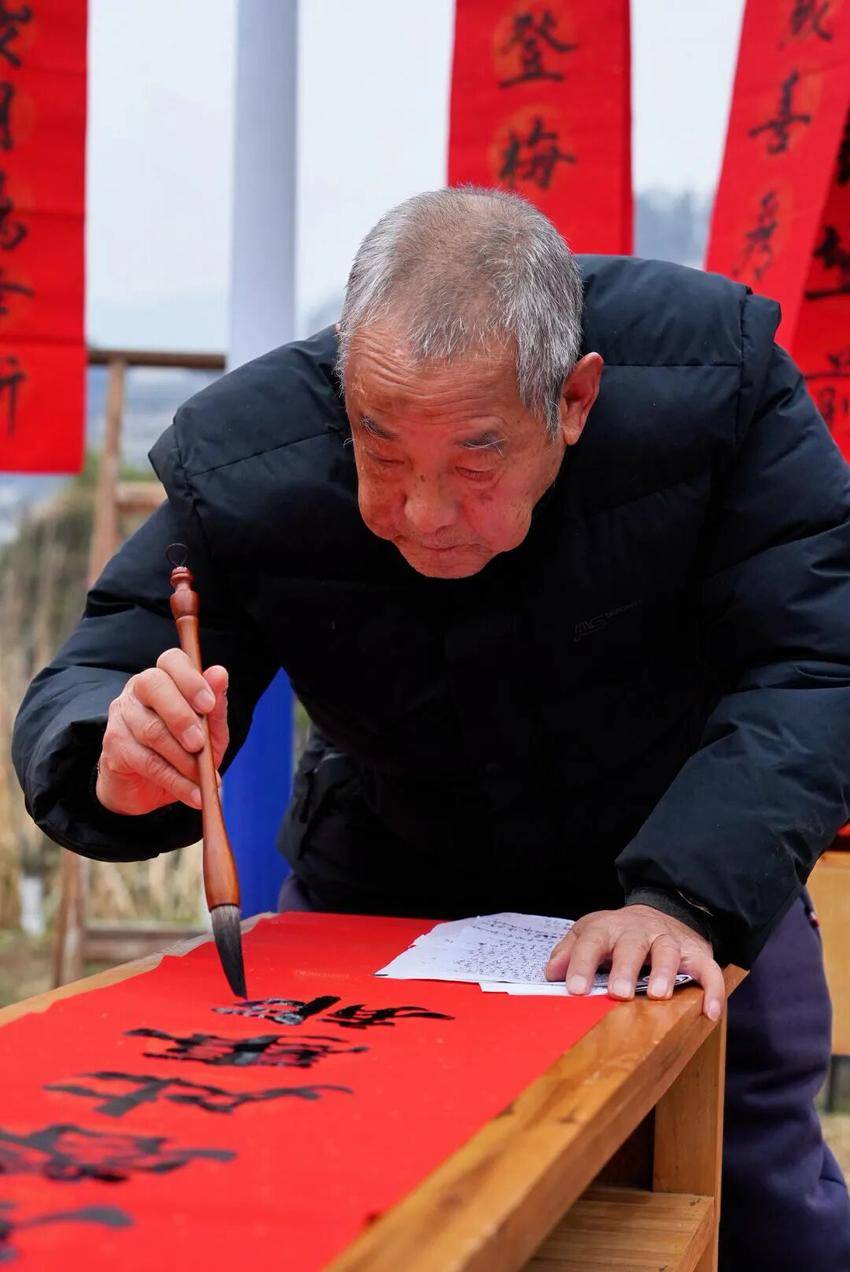 1月27日,梅家河乡党群服务中心联合乡文联在鲁家湾村龙潭新村广场组织开展迎新春送春联活动,将节日祝福送到群众身边。