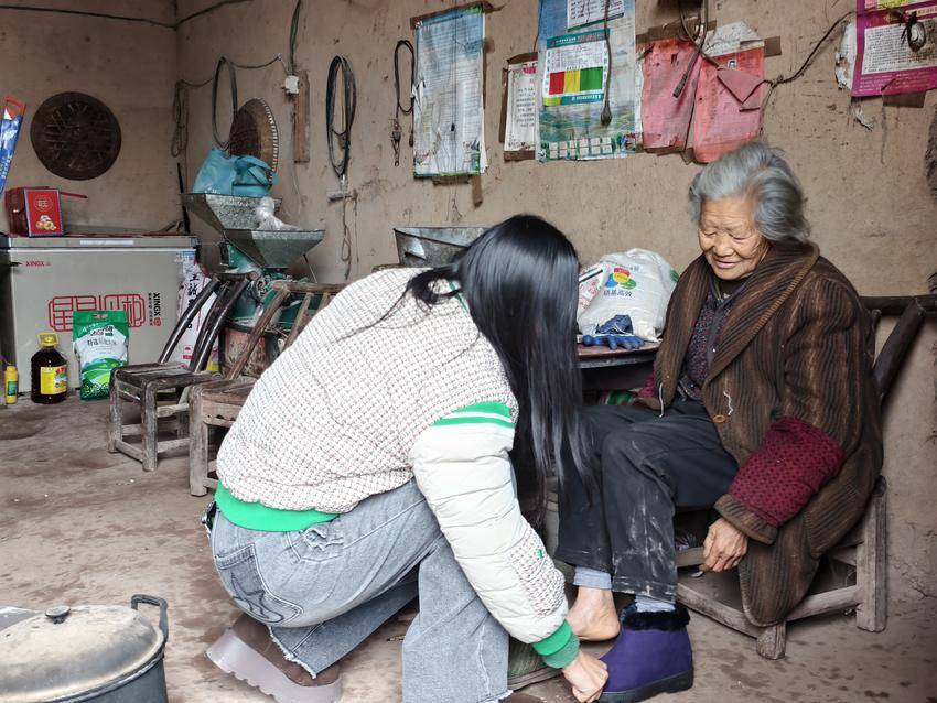 走访计生特扶家庭时,慰问组贴心办实事:在余妈妈家,主动帮忙劈柴并为老人试穿保暖棉鞋;遇部分家庭门前道路施工无法通车,便翻山越岭绕道前行,确保关怀不缺席;在马叔叔家中,大家分工协作采购食材、下厨做饭,共赴暖心团年饭。同时,慰问组还细致了解家庭生活需求,普及冬季健康防护知识。