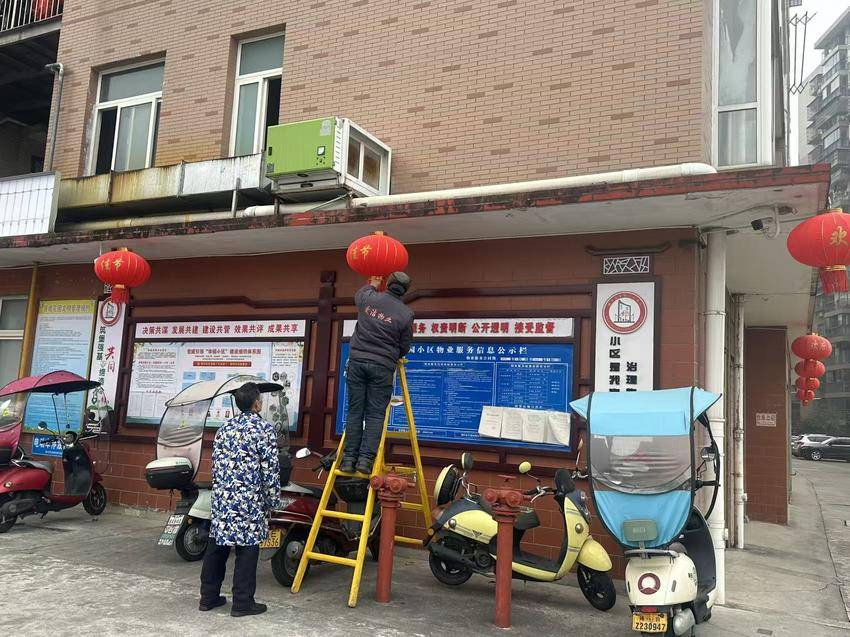 2月4日,茅坪镇橘颂社区联合景城花园小区业委会、爱洁物业公司开展春节环境布置,为小区增添了一道亮丽风景。 工作人员穿梭在小区各楼栋出入口,分工协作、有条不紊地悬挂红灯笼、布置风车墙。大家手提灯笼,细心调整每一个细节,让红灯笼高高挂起。原本宁静的小区瞬间洋溢着浓浓的年味,成为冬日里一道亮丽风景。 此次悬挂灯笼活动让居民感受到了社区的关怀,增强了大家对传统节日的认同感,拉近了邻里间距离。 (来源:茅坪镇橘颂社区 韩环宇) 责任编辑:邹媛 值班编辑:魏巍