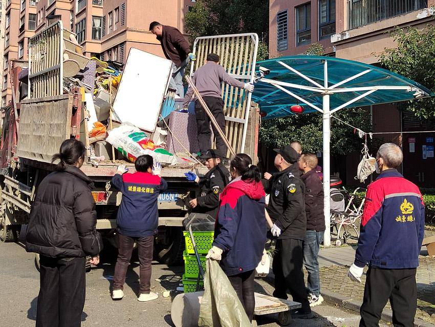 清理现场,社区工作人员、物业保洁及城管执法人员分工协作、干劲十足。从顶楼逐层向下推进,对楼道内逾期未清理的废旧家具、纸箱、塑料瓶、破损自行车等杂物进行集中清理搬运。遇到体积庞大、重量较重的旧沙发、衣柜等物品,众人合力抬运,对于散落的细小杂物,细心分拣收纳,确保不留一处卫生死角。工作人员始终秉持“以人为本”的原则,对居民提出,疑问及时解答,对情绪抵触的居民耐心劝导,用真诚与负责赢得了居民的理解与支持,不少居民还主动加入清理队伍,共同参与到环境整治中,形成了“人人动手、共建家园”的良好氛围。