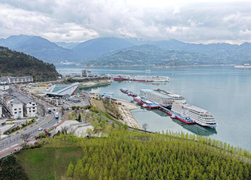 时下,位于长江三峡大坝坝前的湖北省宜昌市秭归县繁花碧水,草长莺飞,满目皆春。近年来,当地持续围绕三峡生态屏障区建设,进行山水林田湖草沙系统性生态修复,取得阶段性成果。 3月30日,人们在三峡大坝坝前湖北省秭归县的滨江游步道休闲游玩(无人机照片)。 3月30日,人们在三峡大坝坝前湖北省秭归县徐家冲港湾水域划龙舟(无人机照片)。 (来源:王罡) 责任编辑:丁淑君 值班编辑:吕梦川