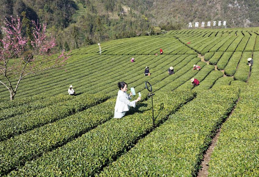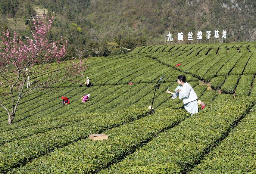 眼下,春茶长势正盛,中国丝绵茶之乡湖北省宜昌市秭归县的茶农抢抓农时采摘明前茶,加工后通过电商供应市场,忙碌的身影与春意盎然的茶山共同构成一幅美丽的画卷。 4月1日,茶农在湖北省秭归县九畹溪镇峡口村丝绵茶基地采摘茶叶嫩芽。 4月1日,青年茶农龚颖年在湖北省秭归县九畹溪镇峡口村茶山直播带货丝绵茶。 (来源:王罡 朱鹏辉) 责任编辑:韩晓晴 值班编辑:吕梦川