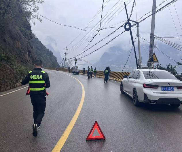 收到群众反映后,该镇党委政府立即调度周家湾村民兵连前往现场开展应急处置工作。民兵队伍接到命令后,第一时间抵达现场,在路段两端醒目位置设置路障和安全警示标识,划定危险区域,防止无关人员和车辆误入。同时,安排专人指挥交通,引导过往车辆、行人安全避让,避免出现交通拥堵和意外事故;对脱落的通信线路及周边障碍物进行清理,最大限度降低线路对通行的影响,全力筑牢安全防线。经过一个多小时的处置,彻底消除了安全隐患,交通恢复通畅。