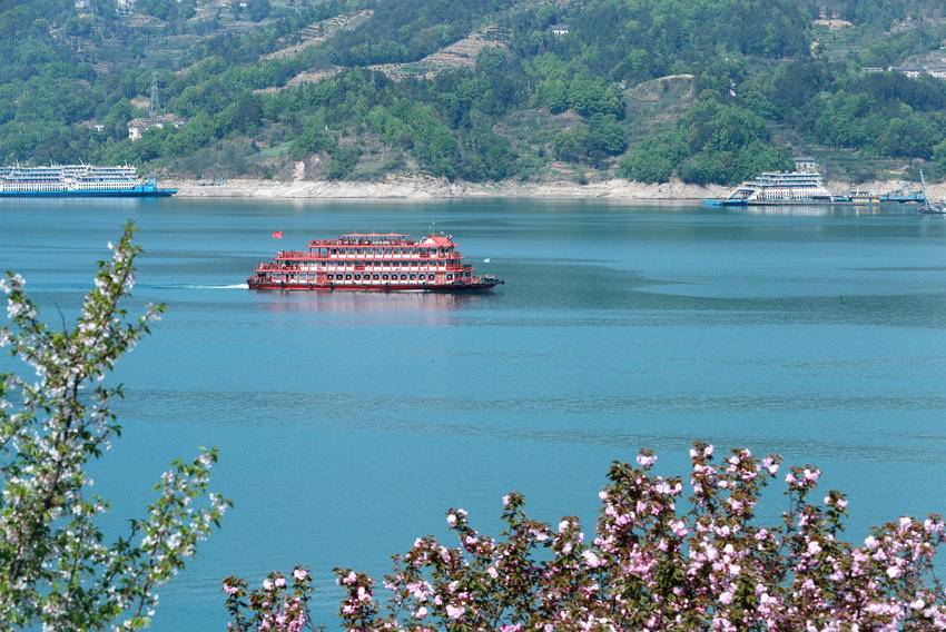 4月3日,三峡画廊6号游轮行驶在三峡大坝坝前湖北省宜昌市秭归县望江公园外沿水域。